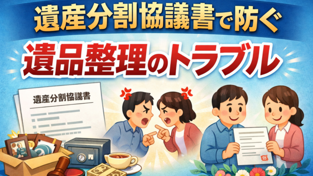 遺産分割協議書を活用することは、遺品整理におけるトラブルを防ぐうえで、非常に有効な予防策のひとつです。